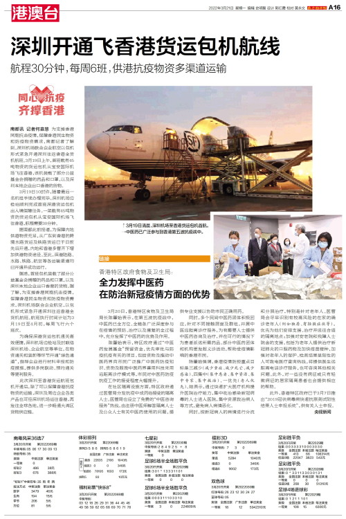 南都讯 记者何嘉慧 为支援香港同胞抗击疫情,保障香港民生物资和防疫物资需求,南都记者了解到,深圳机场联合企业航空以包机形式紧急开通深圳往返香港全货机航班。3月19日上午,首班载有45吨物资的货运包