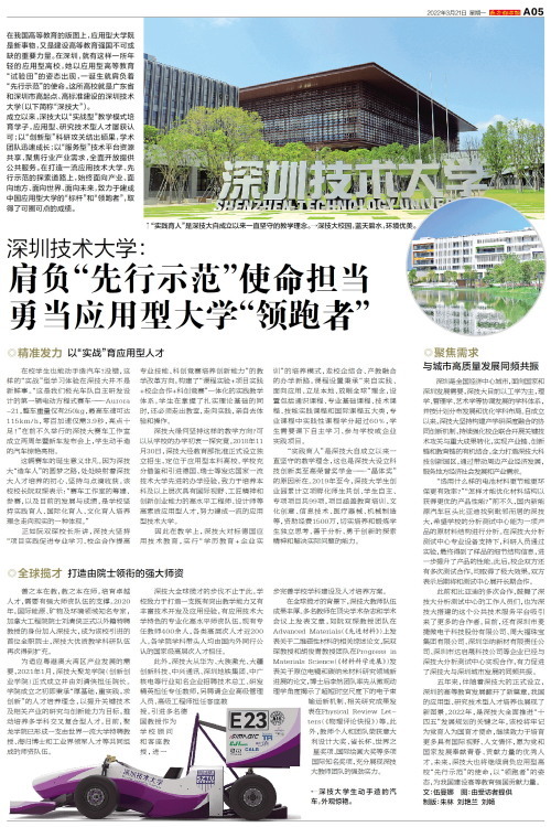 “实践育人”是深技大自成立以来一直坚守的教学理念。 深技大校园,蓝天碧水,环境优美。 深技大学生动手造的汽车,外观惊