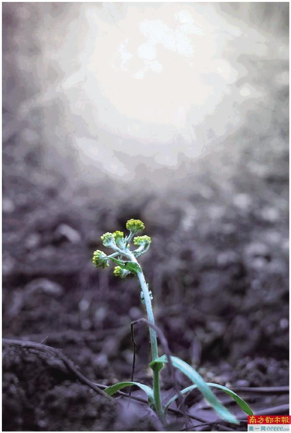 3月22日,广西藤县东航空难救援现场,一枝静默低垂的花朵。 南方日报记者 石磊 董天健 摄