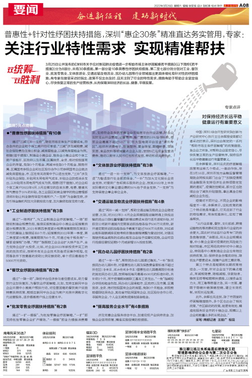 3月25日公开发布的《深圳市关于应对新冠肺炎疫情进一步帮助市场主体纾困解难若干措施》(以下简称《若干措施》)分为8部分,共有30条措施。第一部分是10条普惠性纾困扶持措施,第二至七部分则分别对工业