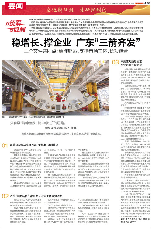 只有以“稳字当头,稳中求进”的思路,提早谋划、布局、落子、建设,将应对短期困难和培育长期动能结合起来,才能实现经济的行稳致远。 一天之内连推三项重要政策,广东稳增长、撑企业的决心和力度超出预期。