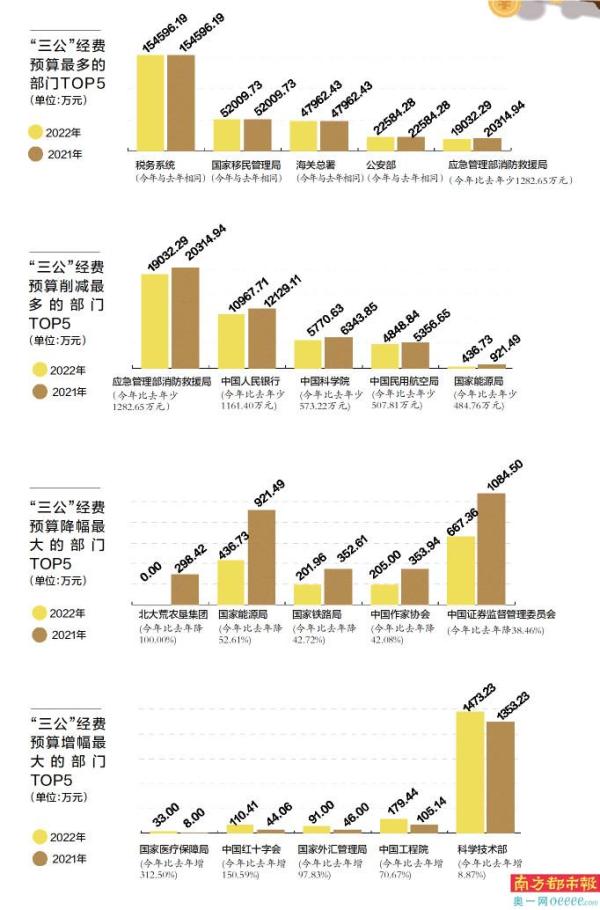 今年有102个中央部门公布了2022年预算,数个部门的“三公”经费变化情况也反映了收窄趋势。与去年相比,压减“三公”经费的部门从87个下降到37个,有59个部门“三公”经费与去年持平。此外,增加“三公”经费的部门数与去年相同,均为6个。