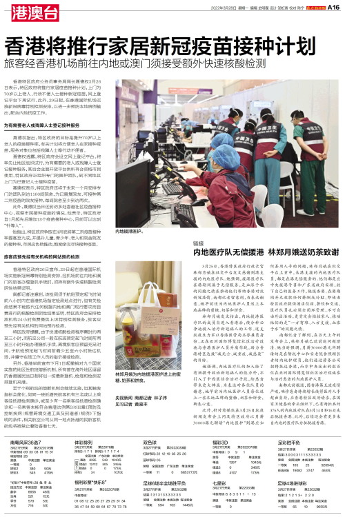 香港特区政府公务员事务局局长聂德权3月26日表示,特区政府将推行家居疫苗接种计划,上门为70岁以上老人、行动不便人士接种新冠疫苗,网上登记平台下周试行。此外,29日起,在香港国际机场实施新冠病毒特