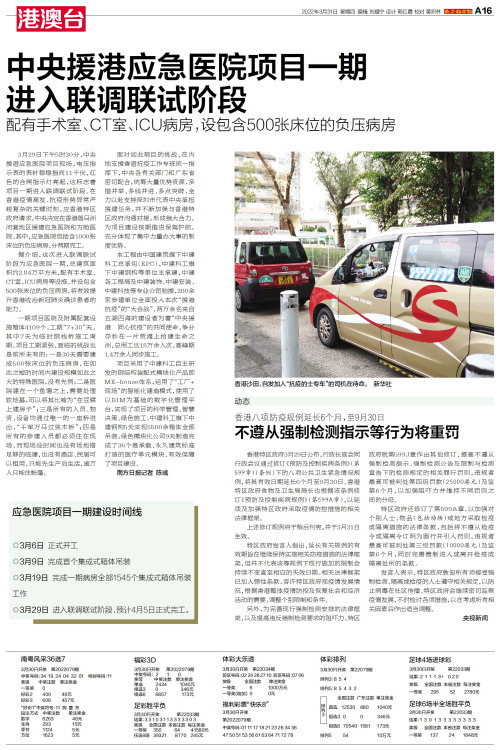 中央援港应急医院项目一期进入联调联试阶段
