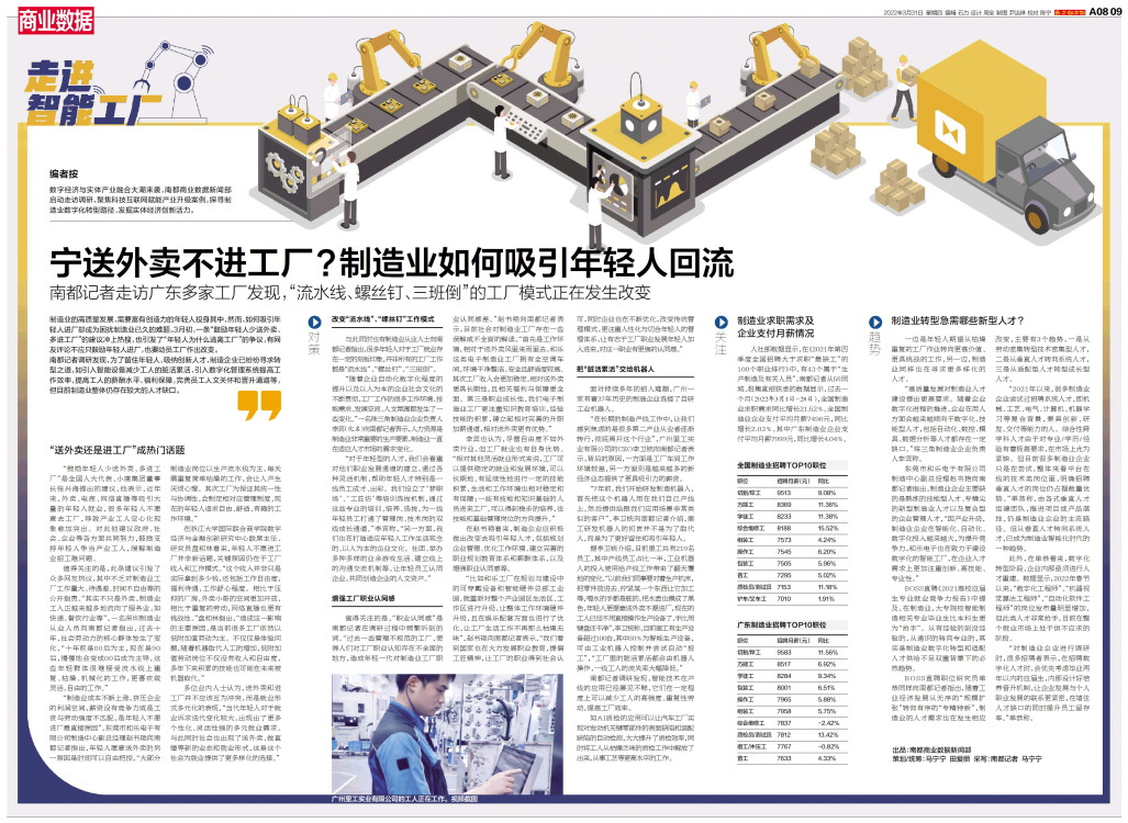 编者按 数字经济与实体产业融合大潮来袭,南都商业数据新闻部启动走访调研,聚焦科技互联网赋能产业升级案例,探寻制造业数字化转型路径,发掘实体经济创新活力。 制造业的高质量发展,需要富有创造力的年