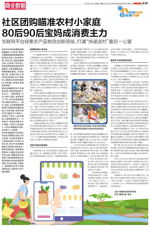社区团购瞄准农村小家庭 80后90后宝妈成消费主力