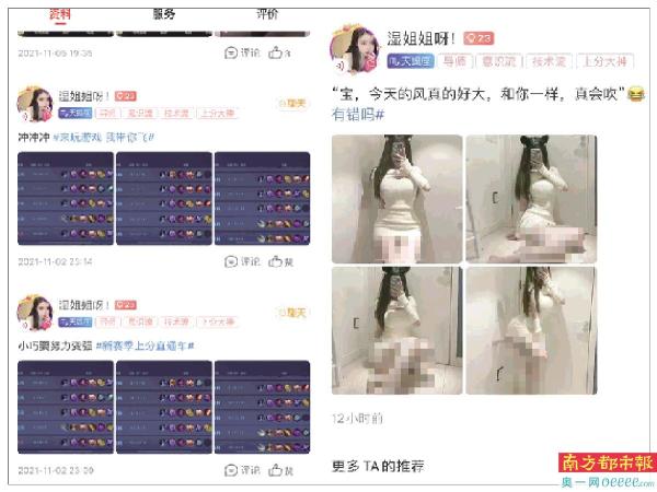 猎游上的游戏陪玩“猎人”,在主页贴出暴露的照片。