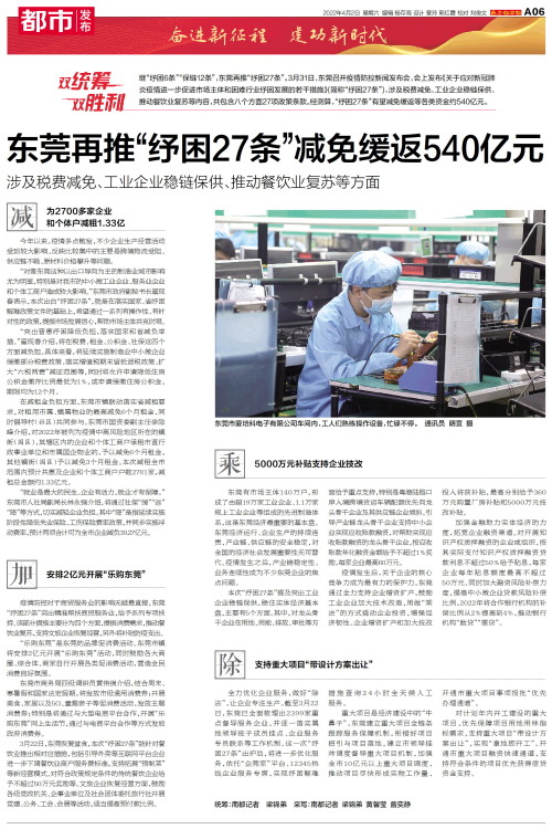 东莞再推“纾困27条”减免缓返540亿元