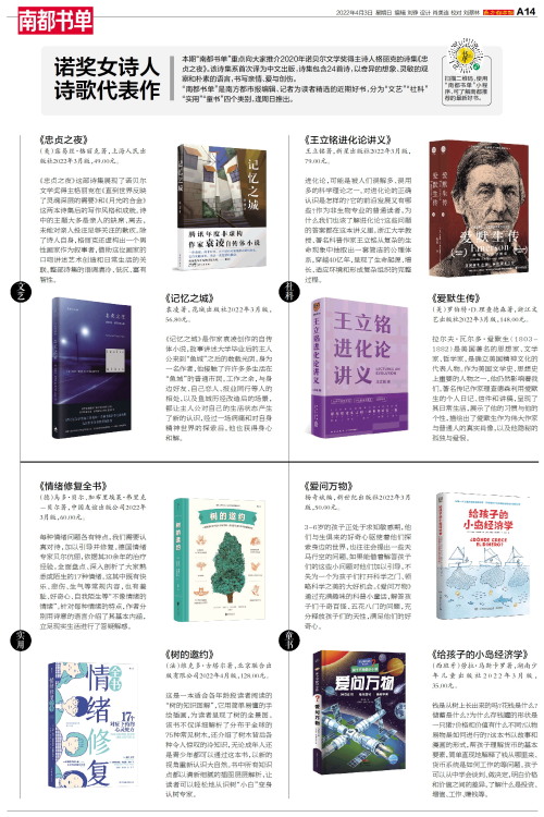 本期“南都书单”重点向大家推介2020年诺贝尔文学奖得主诗人格丽克的诗集《忠贞之夜》。该诗集系首次译为中文出版,诗集包含24首诗,以奇异的想象、灵敏的观察和朴素的语言,书写亲情、爱与创伤。“南都书