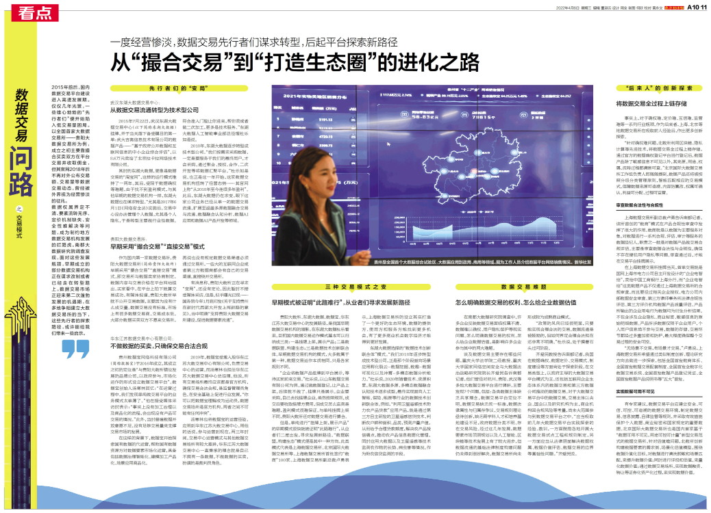 交易模式 2015年前后,国内数据交易平台建设进入高速发展期。仅仅几年光景,一些雄心勃勃的“先行者们”便开始陷入低交易量困局。以全国首家大数据交易所——贵阳大数据交易所为例,成立之初主要靠撮合买