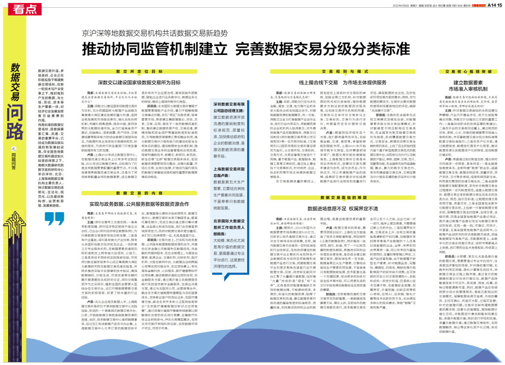 同题问答 数据交易升温,多地政府、企业正在积极投身于筹建数据交易场所。在新一轮技术与产业变革之下,每时每刻产生的数据,与土地、劳动、资本等生产要素一样,对经济社会发展发挥着日益重要的作用。而高