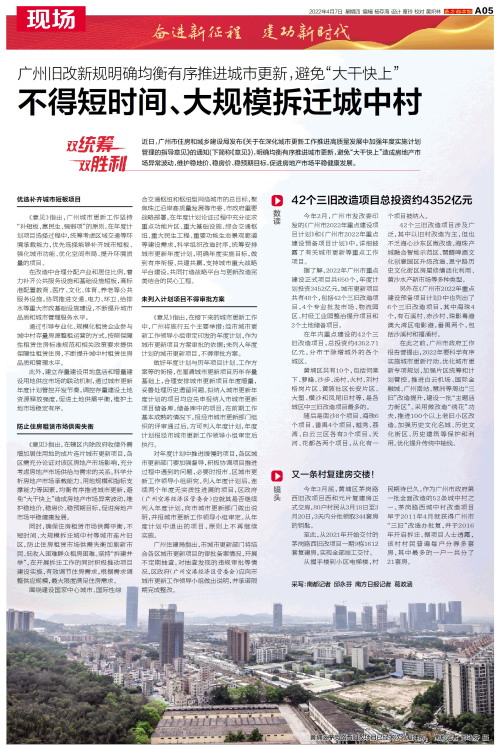 据了解,2022年广州市重点建设正式项目共650个,年度计划投资3452亿元,城市更新项目共有48个,包括42个三旧改造项目,4个专业批发市场、物流园区、村级工业园整治提升项目和2个土地储备项目。