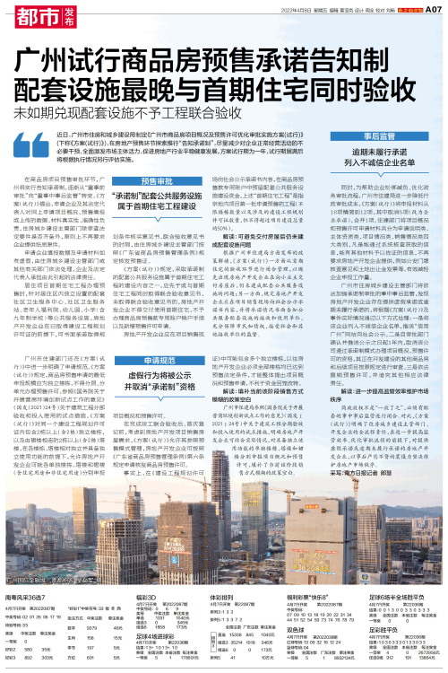 广州试行商品房预售承诺告知制 配套设施最晚与首期住宅同时验收
