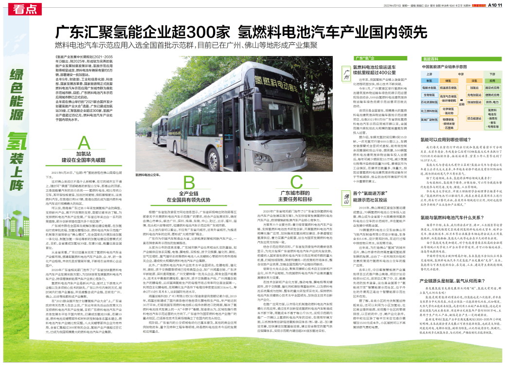 去年9月,财政部、工业和信息化部、科技部、国家发展改革委、国家能源局正式批复燃料电池汽车示范应用广东城市群为首批示范城市群。目前,广东燃料电池汽车示范应用城市群已正式启动。