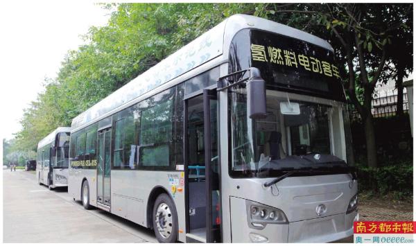 70辆氢燃料电池公交车由佛山市飞驰汽车制造有限公司设计制造,车身全长8.6米,设计美观时尚,在运行过程中排放物只有水,实现零污染。