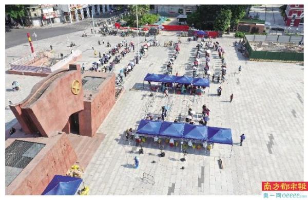 4月10日,广州越秀区团一大广场核酸检测点。 南都拍客 白洁 摄