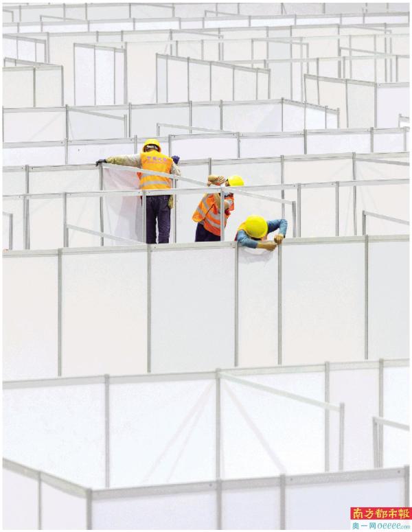 南都、N视频记者在琶洲会展中心现场看到,会展A区1-5号馆正在改建成为方舱医院,大量建筑工人、机械设备、搭建材料等安排陆续进场,通宵作业。