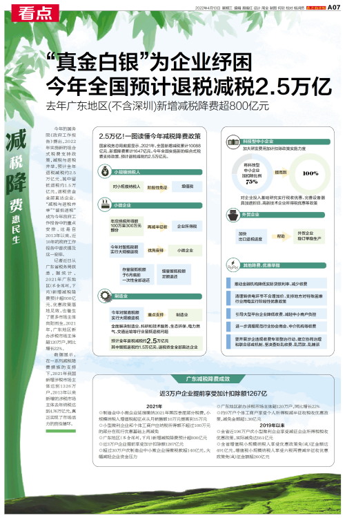 “真金白银”为企业纾困 今年全国预计退税减税2.5万亿
