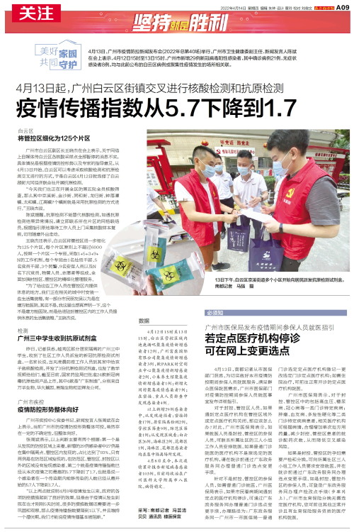 4月13日,广州市疫情防控新闻发布会(2022年总第40场)举行。广州市卫生健康委副主任、新闻发言人陈斌在会上表示,4月12日15时至13日15时,广州市新增29例新冠病毒阳性感染者,其中确诊病例