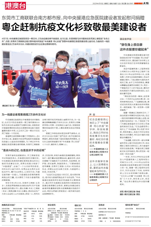 粤企赶制抗疫文化衫致敬最美建设者