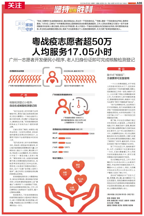“阿叔,您要帮忙生成核酸码的话,请过来我这边,并出示一下您的身份证。”“阿姨,请报一下您的身份证号码,我帮你查询。”4月9日,记者在广州市番禺区新造公园核酸检测点的便民通道看到,工作人员和志愿者正