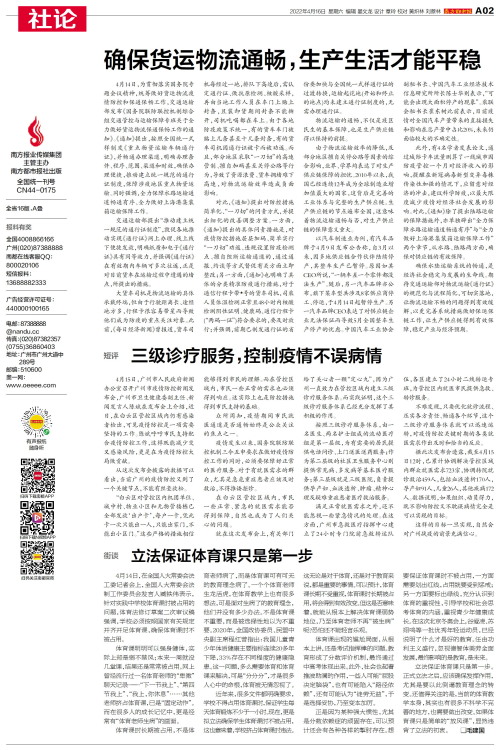 短评 4月15日,广州市人民政府新闻办公室召开广州市疫情防控新闻发布会,广州市卫生健康委副主任、新闻发言人陈斌在发布会上介绍,近日,在白云区管控区域内仍有感染者检出,可见疫情防控是一项需要坚持的
