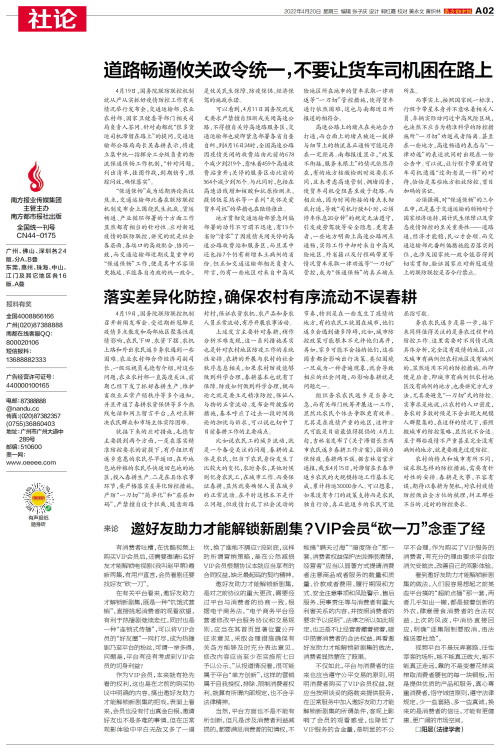 4月19日,国务院联防联控机制就从严从实抓好疫情防控工作有关情况举行发布会,交通运输部、农业农村部、国家卫健委等部门相关司局负责人答问。针对南都就“很多货运司机滞留在路上”的提问,交通运输部公路局