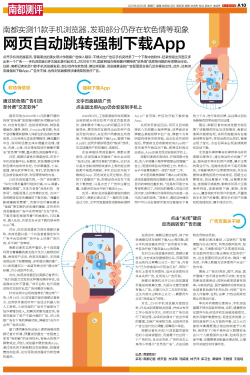 点开手机浏览器首页,穿着黑丝的美女照片伴随着广告映入眼帘、不慎点击广告后手机突然多了一个下载中的软件,赶紧想退出页面又多出来一个广告……手机浏览器已多次因乱象引起关注。2020年11月