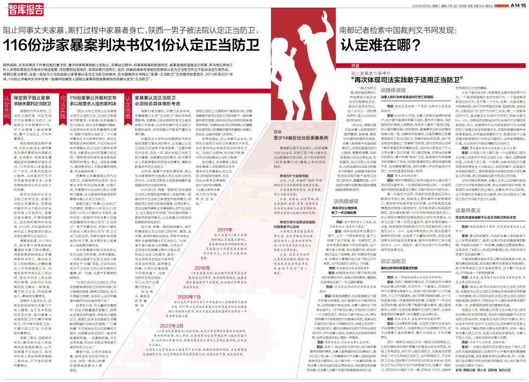 116份涉家暴案判决书仅1份认定正当防卫 认定难在哪?