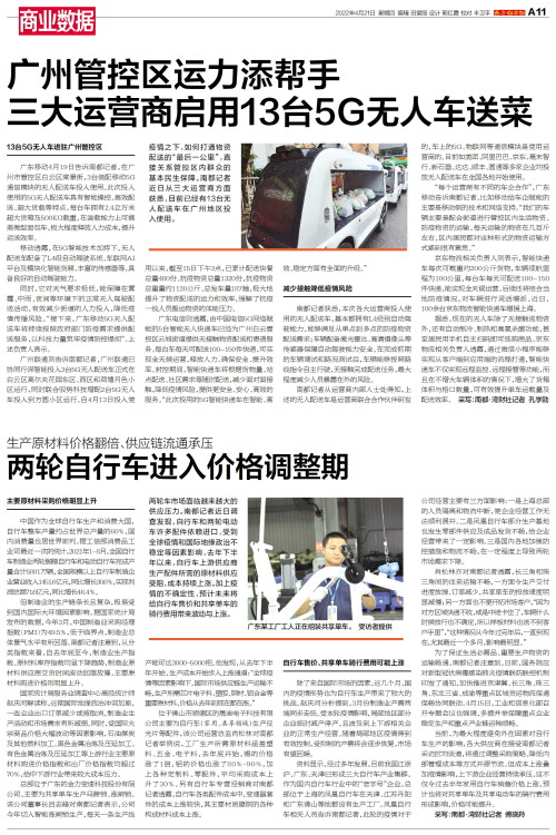 两轮车市场面临越来越大的供应压力。南都记者近日调查发现,自行车和两轮电动车许多配件依赖进口,受到全球疫情和国际地缘政治不稳定等因素影响,去年下半年以来,自行车上游供应商生产配件所需的原材料供应受阻,成本持续上涨。加上疫情的不确定性,预计未来将给自行车售价和共享单车的骑行费用带来波动与上涨。