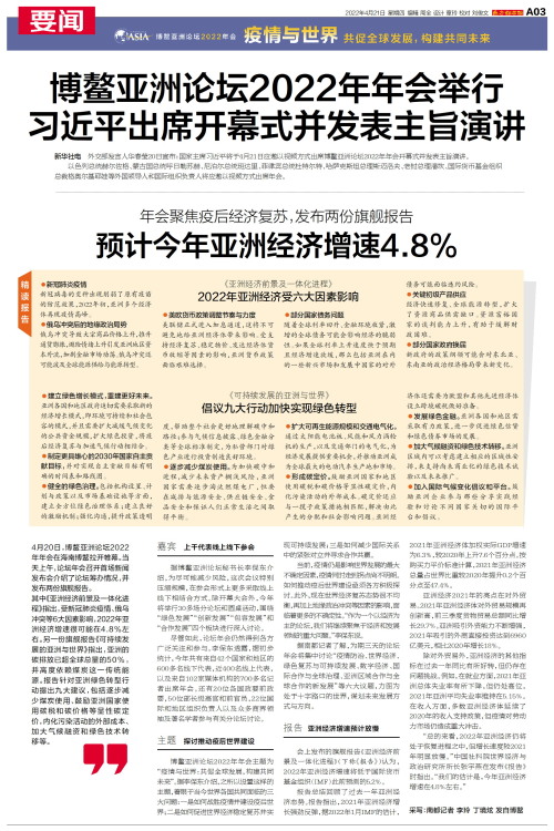 博鳌亚洲论坛2022年年会举行 习近平出席开幕式并发表主旨演讲