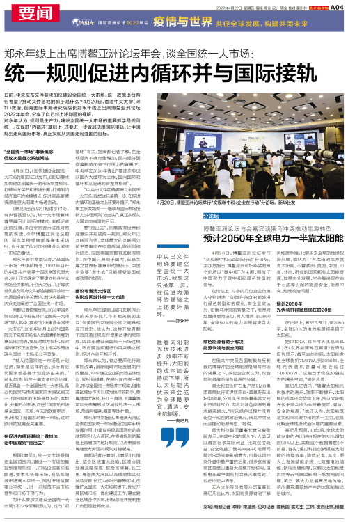 日前,中央发布文件要求加快建设全国统一大市场。这一政策出台有何考量?推动文件落地的抓手是什么?4月20日,香港中文大学(深圳)教授、前海国际事务研究院院长郑永年线上出席博鳌亚洲论坛2022年年会,