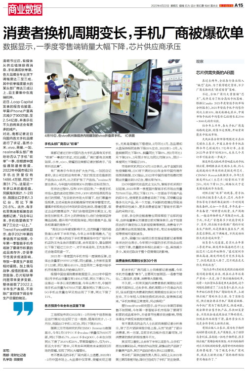清明节过后,有媒体从供应链端获得消息,手机涌现砍单潮,各大品牌全年出货下调幅度达二至三成,其中砍单幅度最大的某头部厂商达三成以上,且主要集中在高端机种。近日,Loop Capital发表的报告也披