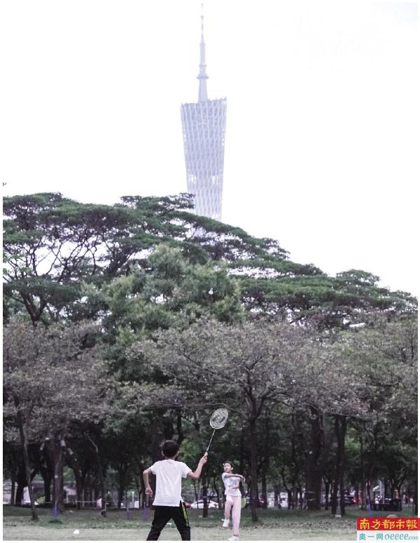 昨日,广州市民的“通信大数据行程卡”已“摘星”。图为二沙岛公园内,小朋友在打羽毛球。 南都记者 徐杰 摄