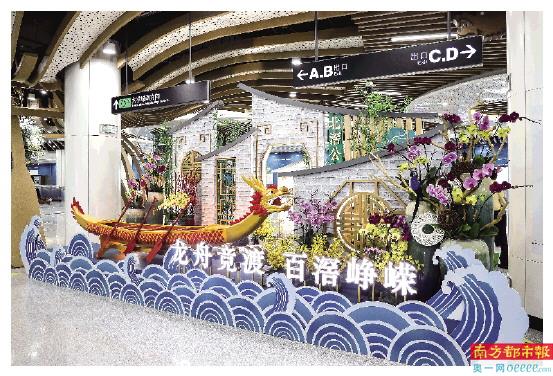 北滘公园站展示“全球视野、百滘峥嵘”龙舟竞渡精神。