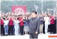 4月25日上午,中共中央总书记、国家主席、中央军委主席习近平来到中国人民大学考察调研。这是习近平向师生们挥手致意。 新华社发 ◆当前,坚持和发展中国特色社会主义理论和实