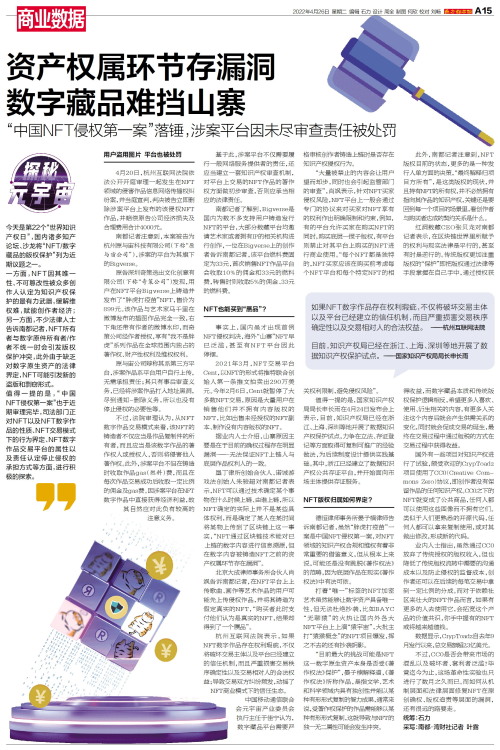 如果NFT数字作品存在权利瑕疵,不仅将破坏交易主体以及平台已经建立的信任机制,而且严重损害交易秩序确定性以及交易相对人的合法权益。——杭州互联网法院 目前,知识产权局已经在浙江、上海、深圳等地开