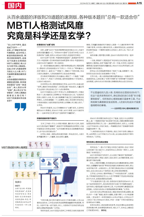 MBTI人格测试风靡 究竟是科学还是玄学?