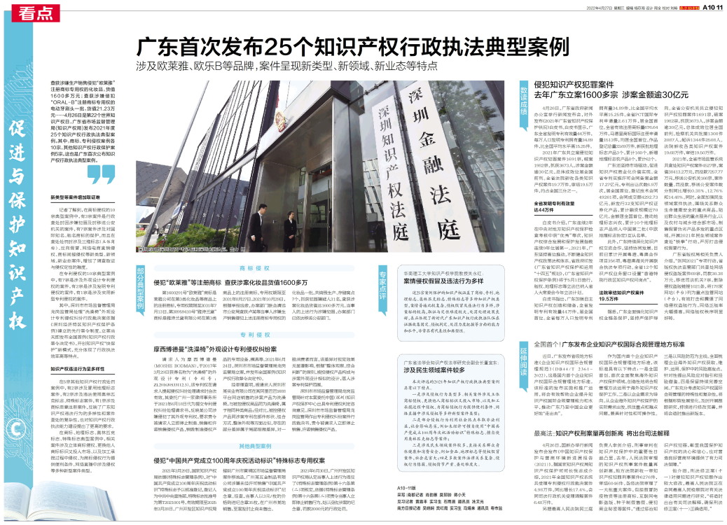 查获涉嫌生产销售侵犯“欧莱雅”注册商标专用权的化妆品,货值1600多万元;查获涉嫌侵犯“ORAL-B”注册商标专用权的电动牙刷头一批,货值21.23万元……4月26日是第22个世界知识产权日,广东