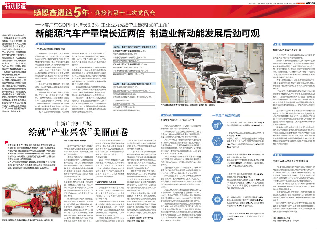 近日,又到了每年各省递交一季度成绩单的时候,因疫情影响,今年各省份的一季度表现受到格外关注。南都记者通过数据对比发现,广东也在顶住压力,稳增长。 工业成为广东一季度最亮眼的“主角”:广东工业对G