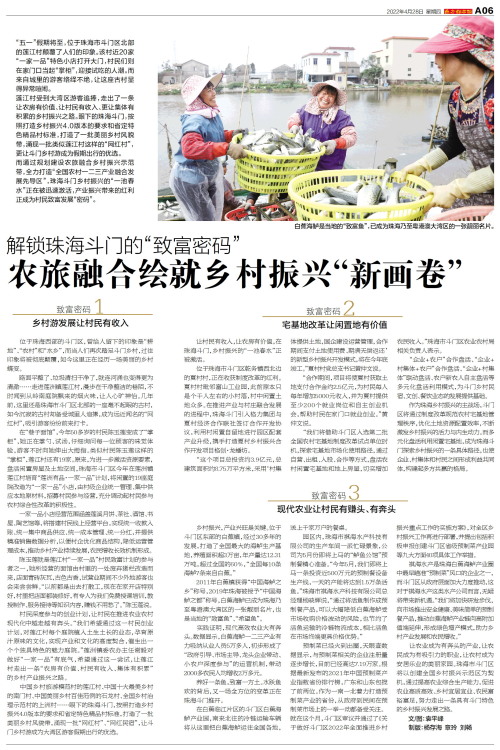 “五一”假期将至,位于珠海市斗门区北部的莲江村颠覆了人们的印象。该村近20家“一家一品”特色小店打开大门,村民们则在家门口当起“掌柜”,迎接试吃的人潮。而来自城里的游客络绎不绝,让这座古村显得异常