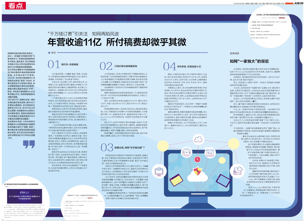 知网再次因价格过高引发争议。 近日,一张落款为中国科学院“文献信息中心”的通告截图被网友多次转发。通告显示,同方知网技术有限公司从4月8日起暂停中科院对CNKI数据