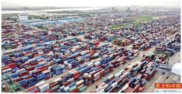 广州港南沙港区码头堆场。广东出台“金融支持25条”,聚焦外贸外资企业现实困难,加大金融支持力度。 新华社(资料图)