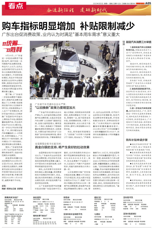 4月28日,《广东省进一步促进消费若干措施》发布,其中包括一系列鼓励汽车消费的政策。有业内人士认为,这次出台的政策可视为去年汽车以旧换新政策的延续,但力度更大,不仅购车指标增加,而且对于购买新能源