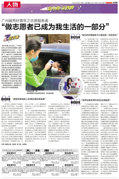 “因为热爱,所以投入。”12年的时间,200多场志愿服务,服务时数超过1000小时……“00”后青年林颖已经是位“老志愿者”了,再过不久,林颖就将通过考核成为一名正式的中共党员,她说,希望召唤更多