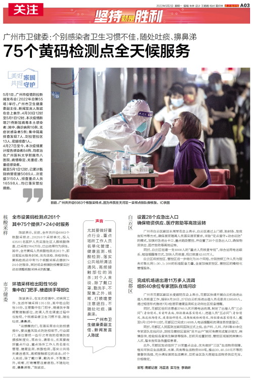 5月1日,广州市疫情防控新闻发布会(2022年总第55场)举行。广州市卫生健康委副主任、新闻发言人陈斌在会上表示,4月30日12时至5月1日12时,本次疫情新增21例新冠病毒本土感染者;其中,确诊