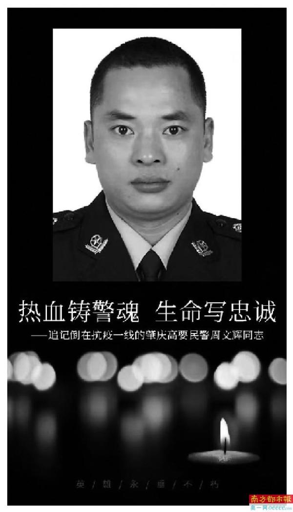 5月3日,南都记者从肇庆市公安局获悉,4月14日,参加抗疫一线工作的肇庆市公安局高要分局民警周文辉,在安保值守期间突发心脏疾病,经抢救无效,因公牺牲,他的生命永远定格在了52岁。