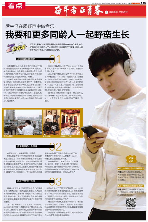 锤炼本领 早日成才 2021年,歌曲《时光背面的我》成为短视频平台中的热门曲目,也让00后音乐人韩瞳进入了人们的视野。在自建的工作室里,他向大家讲述了从“小音乐人”开始的成长之路。 01