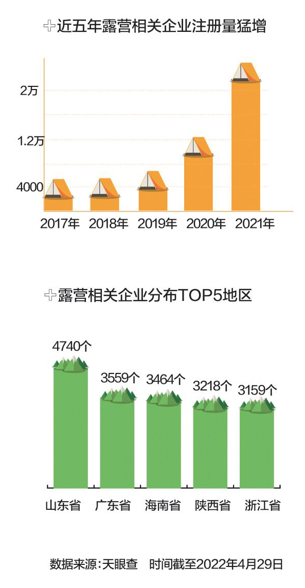 假期期间,野餐用品、吊床类、帐篷/垫子类产品在京东平台的成交额同比均超100%。“风口”背后,近三年我国露营相关企业注册总量持续猛增。多个营地品牌运营者近日在接受南都记者采访时认为,对于行业而言,不管眼下的风口能持续多久,露营都会成为后疫情时代一种新的微度假旅游体验方式,并以“露营+”的形式长久存在,而运营能力是最终比拼的关键。