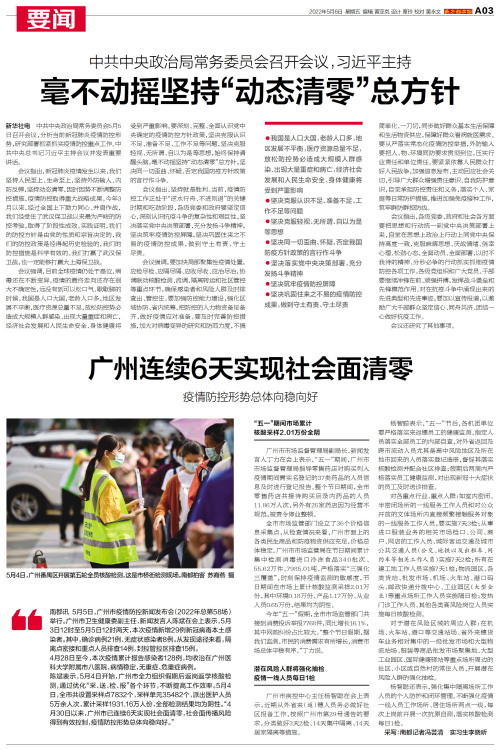 南都讯 5月5日,广州市疫情防控新闻发布会(2022年总第58场)举行。广州市卫生健康委副主任、新闻发言人陈斌在会上表示,5月3日12时至5月5日12时两天,本次疫情新增29例新冠病毒本土感染者。